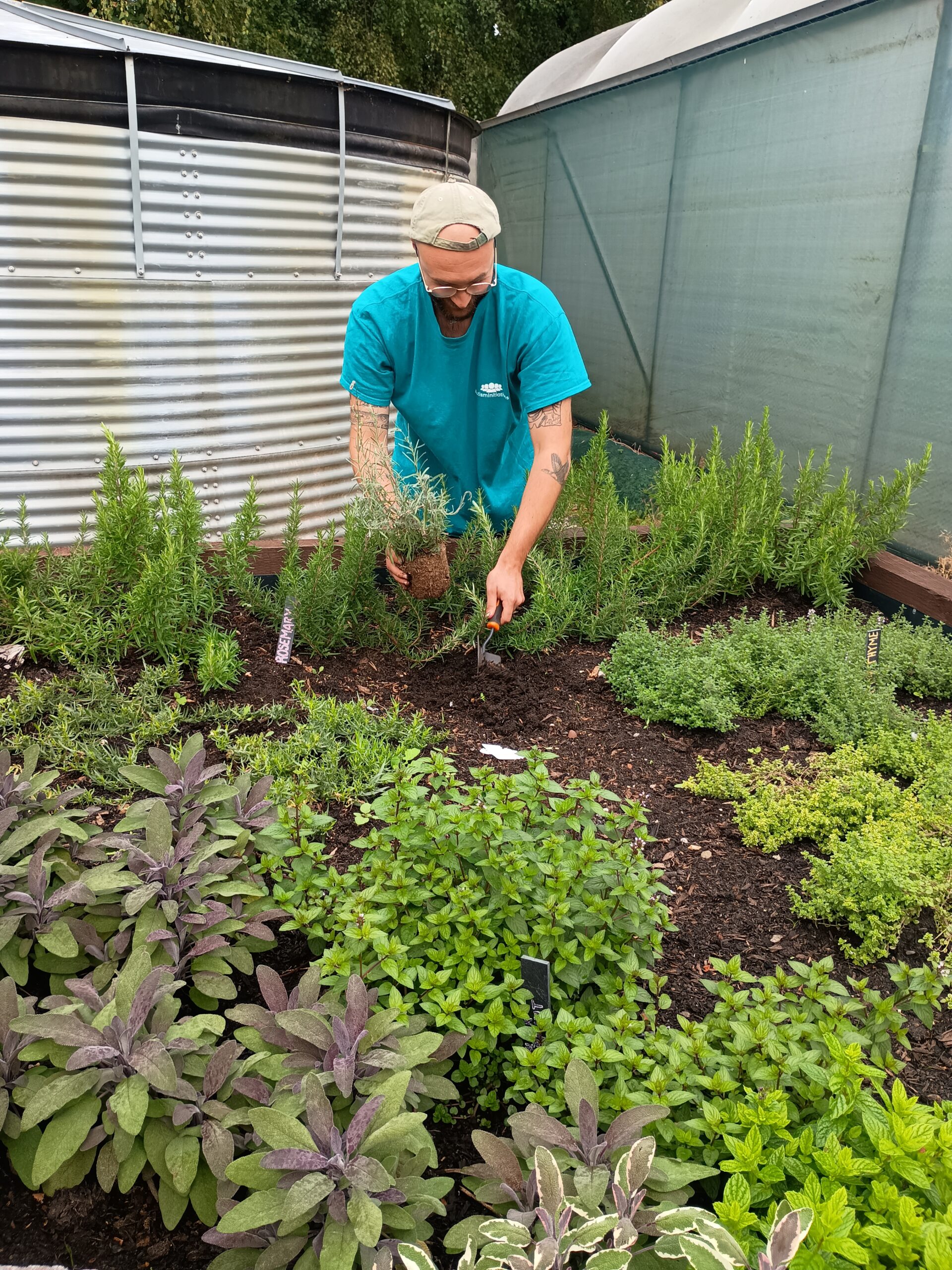 The herbs are already being harvested to supply veg boxes sold to the local community, supporting both vocational skills development and community inclusion.